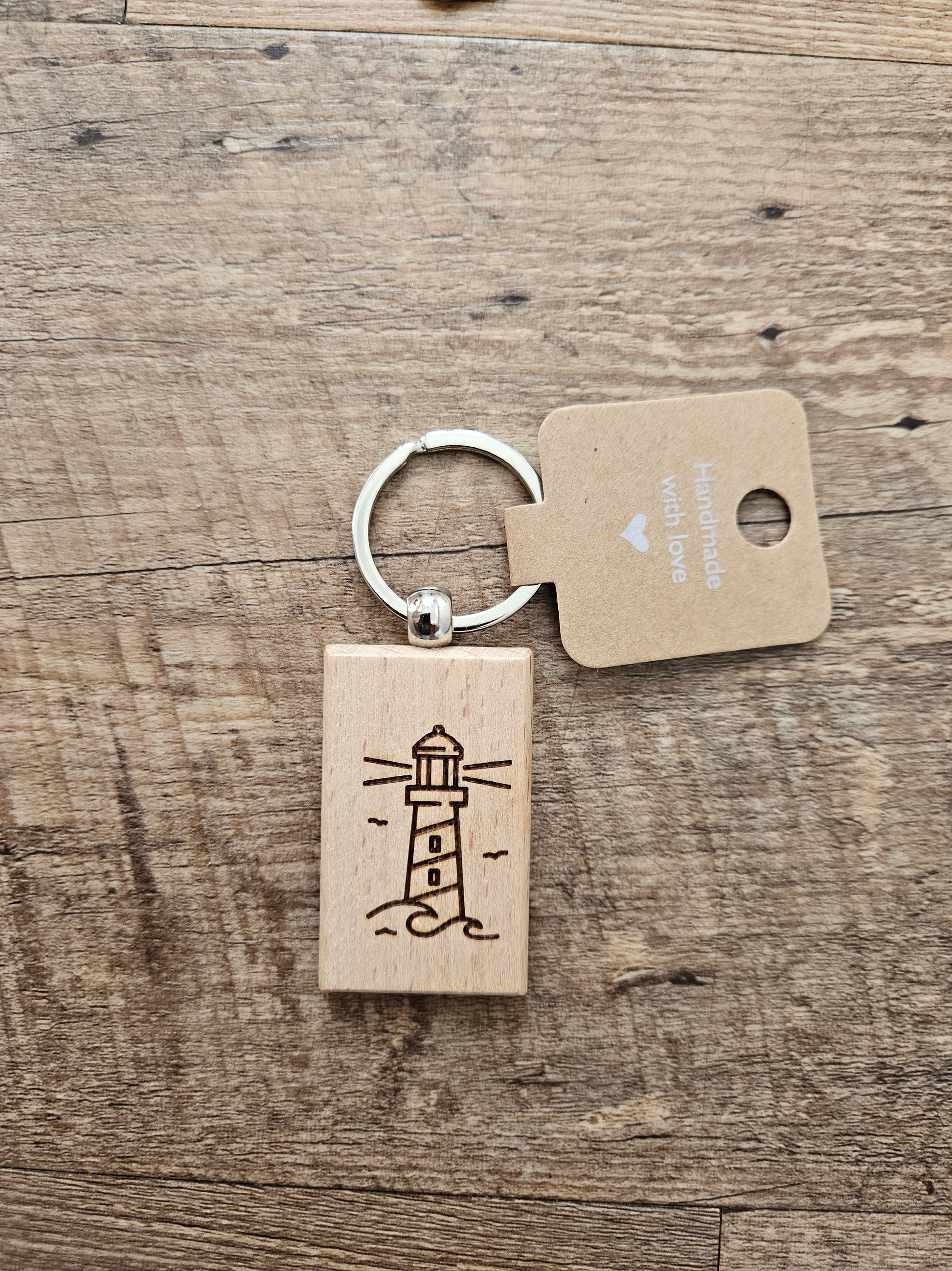 Leuchtturm‑Schlüsselanhänger aus Holz & Metall